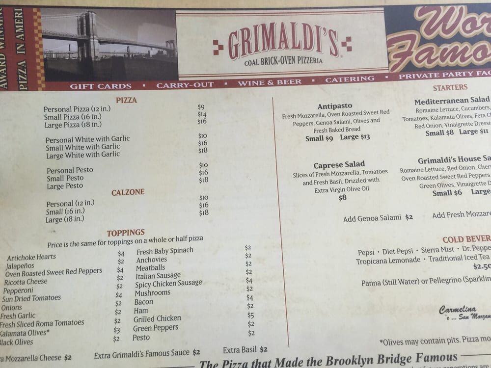 Grimaldi's Pizzeria Gilbert Menu (Update 2025)