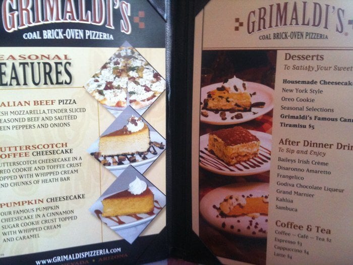 Introducing the Menu at Grimaldi's Pizzeria Gilbert